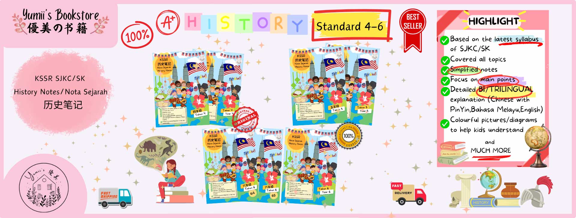 We are an online store offering SJKC (Chinese Primary) and SK (National Primary) school notes. Our notes are designed in bilingual (English & Malay) and trilingual (Chinese with Pinyin, English & Malay) formats to make learning clearer and easier.Unlike traditional textbooks, our materials focus on key points, making revision faster and easier. This method empowers students to study independently, while also enabling parents and teachers to provide guidance in their mother tongue.As a dedicated ecommerce store, our mission is to deliver high-quality, affordable, and reliable learning resources straight to your doorstep—helping students “Learn Better, in Every Language.”